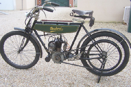 D’après un historique sommaire inscrit dans les catalogues de 1926 et 1927, Austral aurait débuté la production d’une première motocyclette en 1913 alors que la première fiche des mines officialisant cette première motocyclette Austral date du 28 avril 1914. Avec cette motocyclette, la société Austral aurait remporté de nombreux succès grâce au moteur 2 temps fait « Maison ». Elle ne manque pas de bien préciser qu’elle était encore la seule maison Française à construire ce type de moteur à la déclaration de guerre. Le catalogue de 1928 quant à lui précise la date de 1912 pour la production. Vrai ou faux ? On peut supposer que cette petite coquille était plutôt volontaire destinée à mettre encore plus en avant cette argument.