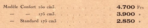 | 1927 | Confort Grand Tourisme | 250 | L.M.P. 2 temps simple ou double échappement | |