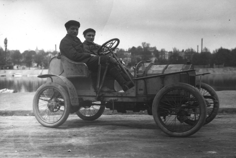 Schweitzer dans une voiturette Simpar au Tour de France en mai 1908