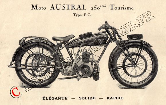 Ce modèle ci-dessus de 1928 est équipé d'un moteur 250cc de marque LUTETIA fabriqué par la société de Marcel ECHARD située au 31, Bd de Courbevoie à Neuilly-Sur-Seine. Le 1er modèle simple échappement sera vendu au prix de 2200 Frs. Le prix grimpera à 3550 Frs pour le modèle Sport à double échappement portant aussi le nom de PC3 à partir de 1929.